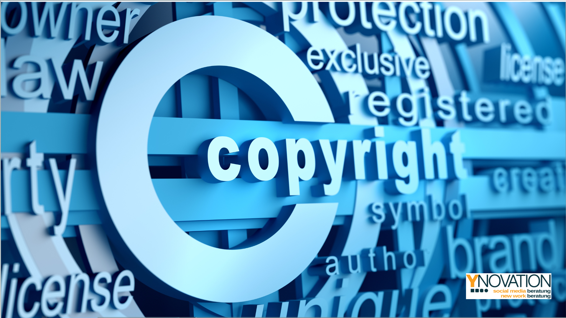 Eine Collage mit Wörtern wie copyright, licence, author und brand.