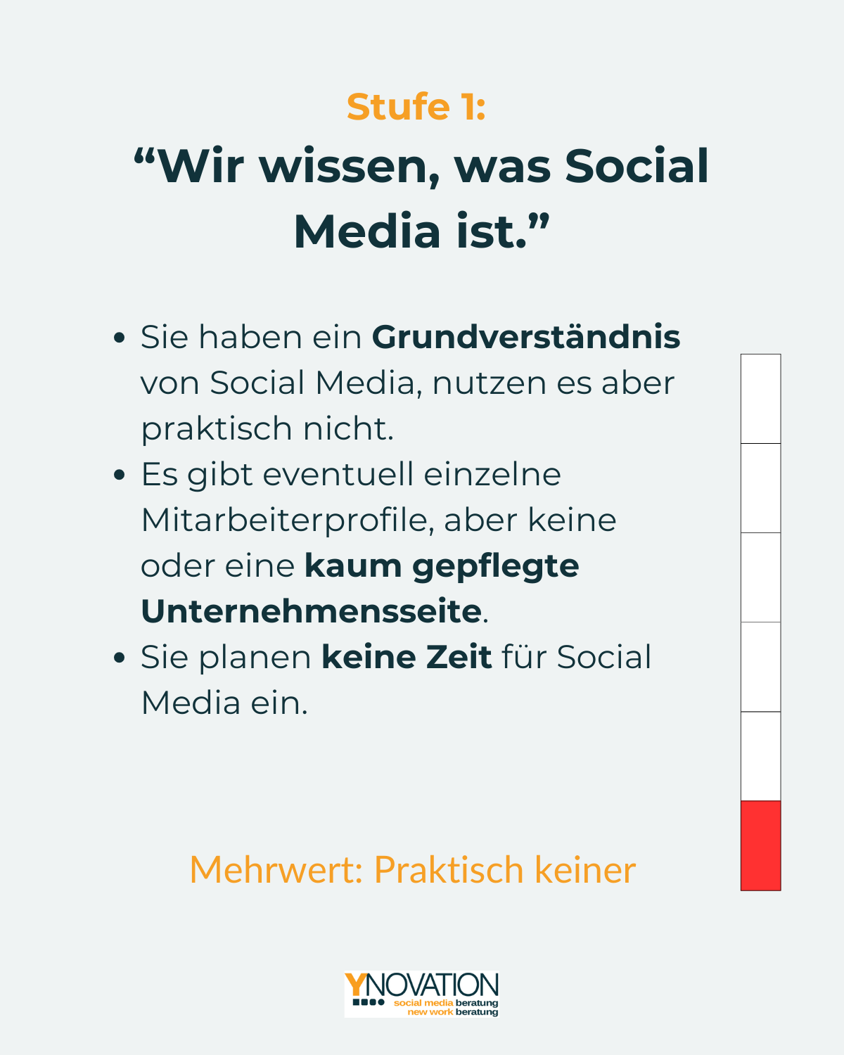 Genau hier setzt unser 6-Stufen-Modell der Social-Media-Nutzung an: Es zeigt Ihnen, wo Sie gerade stehen und welche konkreten Schritte Sie auf das nächste Level bringen.